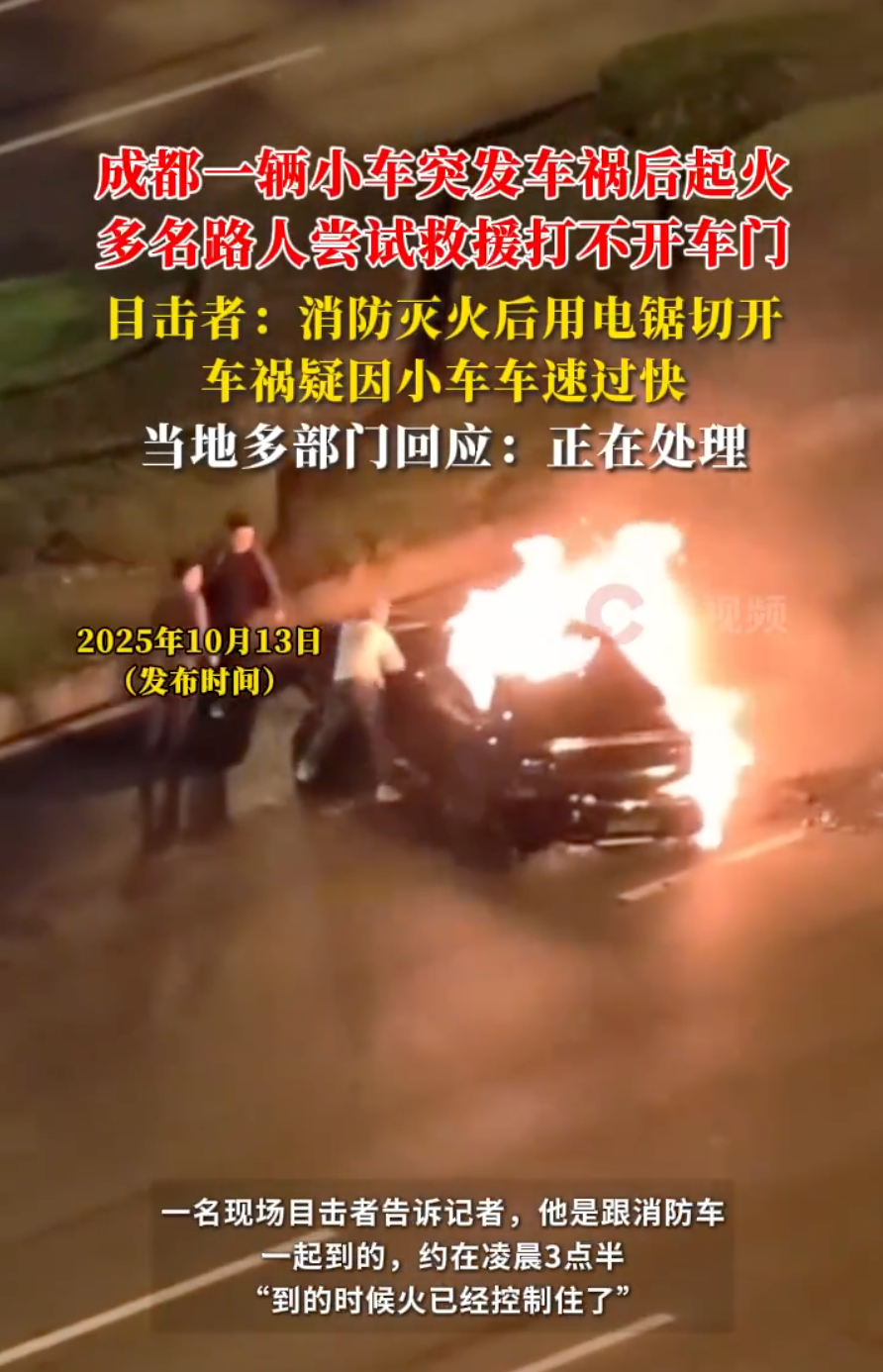 随后,多名路人上前尝试营救配资网,先后尝试拉开小米SU7 Ultra的车门,但车门无法从外部打开。有人找来锤子成功打开主驾驶位车窗后,发现车内火势太大,有其他的车主拿来灭火器,在灭火途中车辆突然发出异响,蹿出明显火势。路人连忙后退。